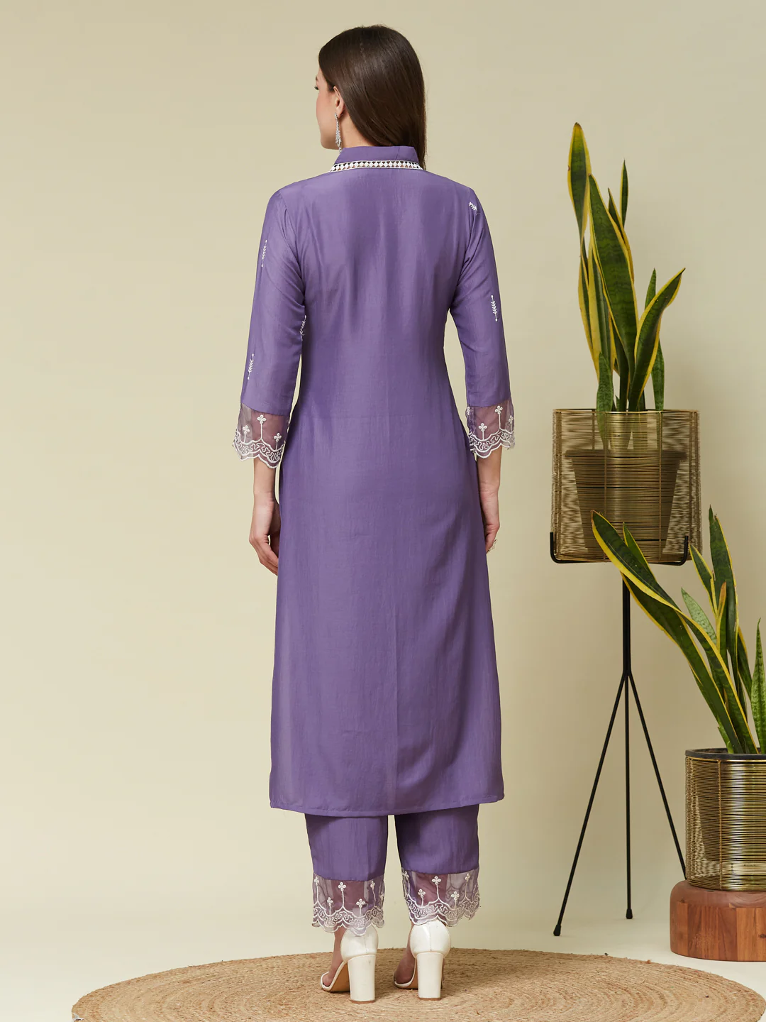 Purple Chinon Embroidered Co-ord Set
