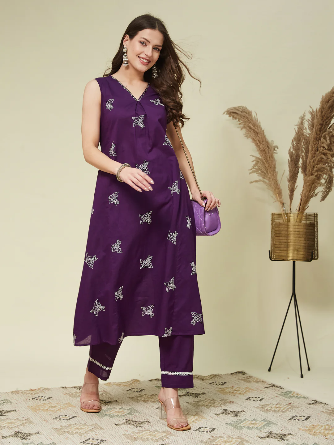 Brighten up your summer wardrobe with this Violet Poly Cotton Embroidered Co-ord Set. Crafted from lightweight and breathable fabric, it features delicate embroidery that adds a touch of elegance while keeping you cool and stylish all day